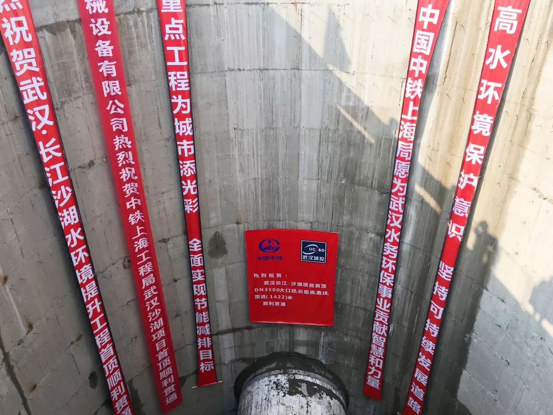 12月13日,公司承建的湖北省首例大口徑超長距離曲線水下頂管——長江、沙湖水環境提升工程沙湖公園W2-W3頂段順利貫通。長江、沙湖水環境提升工程中的管線工程南起于新生路泵站,北止于二郎廟污水處理廠,全長約5.78公里,需先后橫穿規劃武九綜合管廊、友誼大道隧道及現狀沙湖水面等多處節點。其中,沙湖公園W2-W3頂段長度1422.18米,順坡0.22%,為直線+曲線+直線頂管,其中曲線段長141.27米,曲線半徑為600米,施工難度大、技術含量高。頂管采用DN3500F型鋼承口式鋼筋混凝土管,管材外徑4140毫米。施工過程中,項目部認真優化施工方案,精心組織施工生產,克服了地質條件差、施工難度大、安全風險高等不利條件,頂管管道順利穿越沙湖。