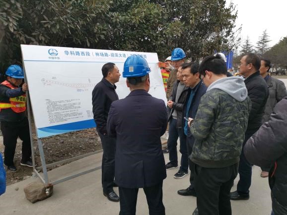 荊門(mén)市住房和城鄉(xiāng)建設(shè)委員會(huì)主任陶然一行到荊門(mén)華科路市政工程項(xiàng)目檢查指導(dǎo)工作