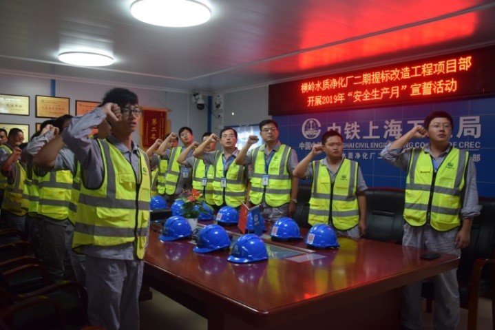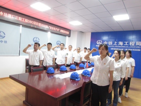 合肥蔡田鋪污水處理廠三期工程:組織全體員工進行2019年“安全生產(chǎn)月”集體宣誓簽名活動。合肥蔡田鋪項目部目前處于土方施工階段,6月份將進入施工大干期間,安全生產(chǎn)是項目能夠按期完在的必要條件。為確保工程順利施工、按期完工,項目部以“安全生產(chǎn)月”宣誓為契機,引導全體職工把安全生產(chǎn)、質(zhì)量管理放在重要位置,進一步提升安全生產(chǎn)責任意識。(朱天娥)
