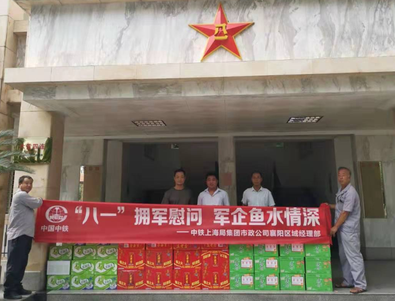 7月30日,在建軍節來臨之際,襄陽區域經理部到襄陽通信三營開展 “‘八一’擁軍慰問,軍企魚水情深”活動。項目負責人為部隊的官兵戰士送上節日的祝福和親切的慰問,并送上了涼茶、綠茶和牛奶等節日慰問品,在炎炎夏日為通信官兵們送去一絲清涼。