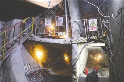 而且該段隧道為存車折返線,隧道十分寬大,無法采用常規的盾構機掘進,因此這504米長的距離只能人工掘進,據該負責人介紹,這段隧道都在地下911米,隧道的樣式如同馬蹄形,面積大約有88.7平方米,純手工作業,每天的掘進量大概只有60多厘米。