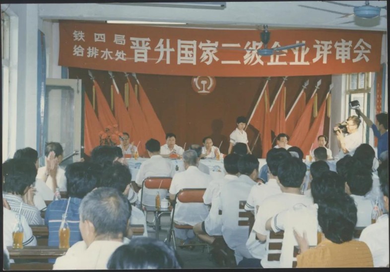 企業(yè)升級(jí)是國(guó)家“七五”期間的中心任務(wù),圍繞著“抓管理、上等級(jí)、全面提高素質(zhì)”的工作要求,全處廣泛宣傳發(fā)動(dòng)。從加強(qiáng)基礎(chǔ)工作入手,成立領(lǐng)導(dǎo)小組和企管辦,圍繞安全、質(zhì)量、效益等重點(diǎn),廣泛開(kāi)展標(biāo)準(zhǔn)化、計(jì)量、能耗、檔案、普法、全面質(zhì)量管理、班組建設(shè)等專項(xiàng)達(dá)標(biāo)升級(jí)。機(jī)關(guān)各部門(mén)、各單位對(duì)照“方針目標(biāo)任務(wù)展開(kāi)表(類似于現(xiàn)在管理矩陣、責(zé)任清單)開(kāi)展資料“補(bǔ)強(qiáng)”工作。1990年,給排水工程處通過(guò)鐵道部評(píng)審組考核驗(yàn)收,成為全局第一家晉升國(guó)家二級(jí)企業(yè)的單位,全處職工每人都晉升了一級(jí)標(biāo)準(zhǔn)工資,更重要的是剛剛成為獨(dú)立法人不久的給排水處整體管理理念和綜合素質(zhì)有了顯著提升。處相繼榮獲全國(guó)五一勞動(dòng)獎(jiǎng)狀、全國(guó)先進(jìn)施工企業(yè)等榮譽(yù),成為名噪一時(shí)的鐵四局“四小龍”之一,無(wú)論是企業(yè)管理、經(jīng)濟(jì)效益還是員工風(fēng)貌,都成為全局標(biāo)桿。