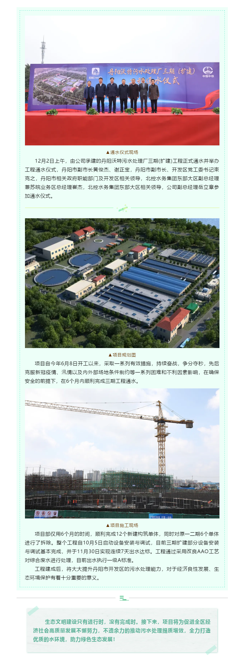 丹陽沃特污水處理廠三期(擴建)工程正式通水