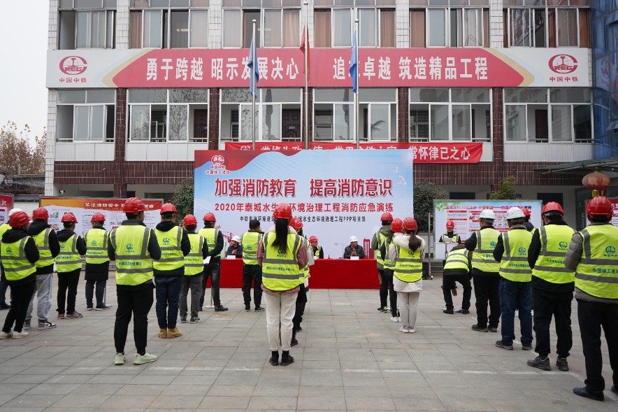 12月9日,泰城水生態環境治理工程PPP項目在駐地開展消防應急實戰演習,項目部及項目公司總包部員工四十余人參加了演練。