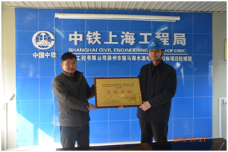 121日,徐州市水利局規計處處長于孝民為公司徐州駱馬湖水源地施工03標項目部頒發“文明工地”證書,并舉行授牌儀式。