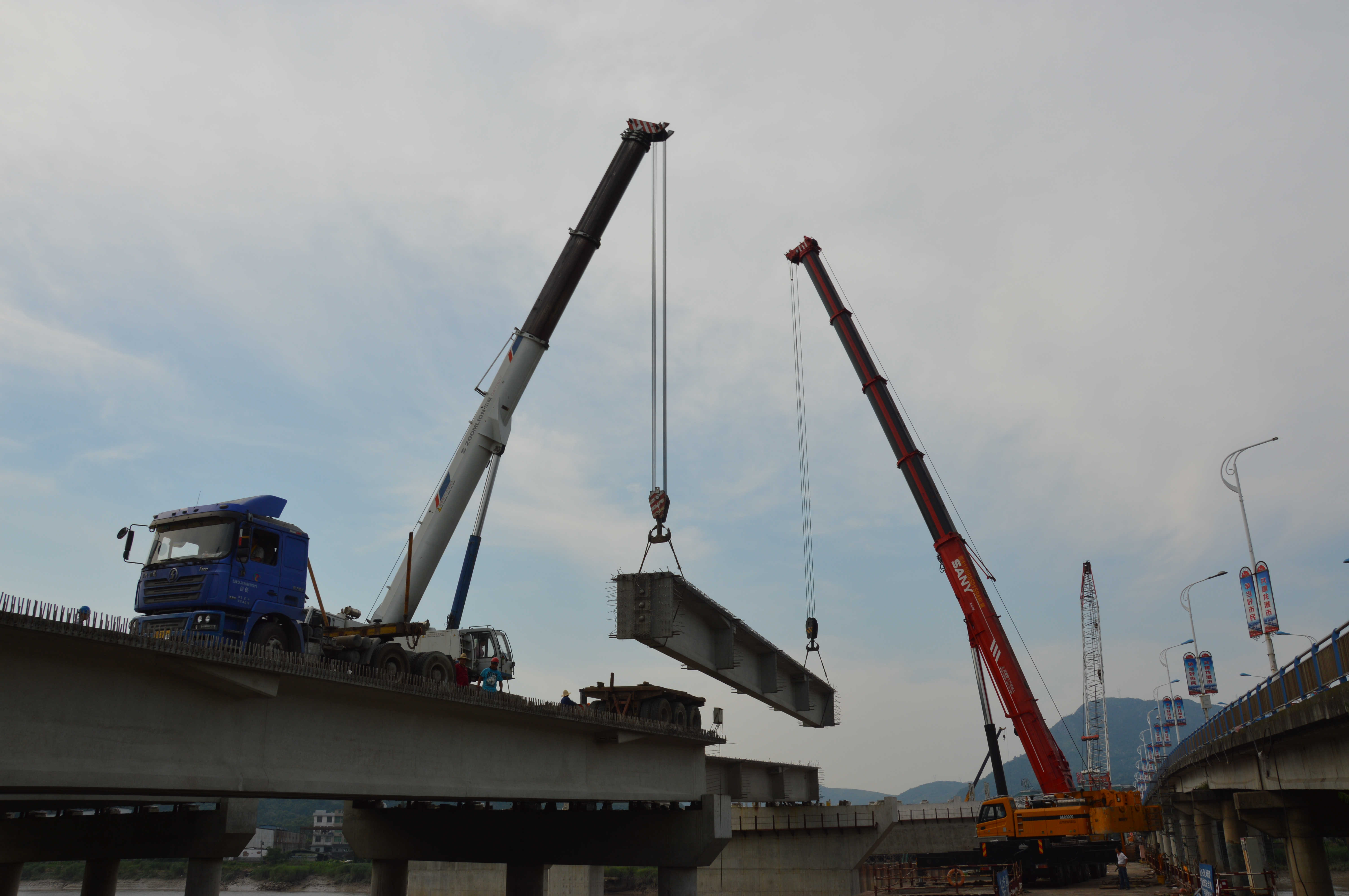 龍港大橋T梁架設。