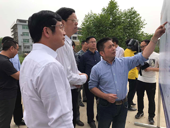 4月19日上午,臺州市人大常委會主任元茂榮攜市人大代表一行到黃巖江口污水處理廠改擴建工程施工現場進行調研,臺州市黃巖區排水處總經理羅慶法陪同。