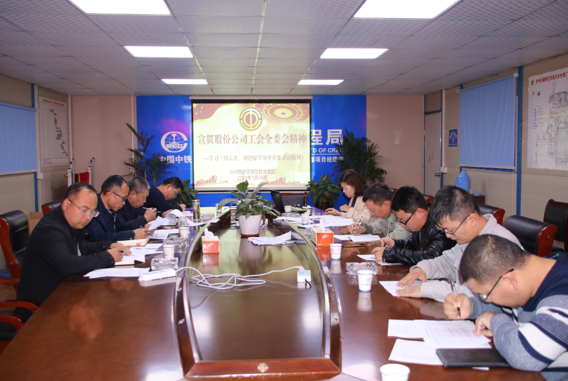 會上,黃偉帶領大家集中學習了《周孟波在中國中鐵工會三屆七次全委(擴大)會議上的講話》精神,宣貫了股份公司工會工作在2017年取得的各項成績以及2018年工會工作的部署。隨后,區域項目經理岳立章帶領大家學習了《劉建媛在中國中鐵工會三屆七次全委(擴大)會議上的講話》精神,并簡要回顧了臺州區域項目2017年工會工作取得的成績。